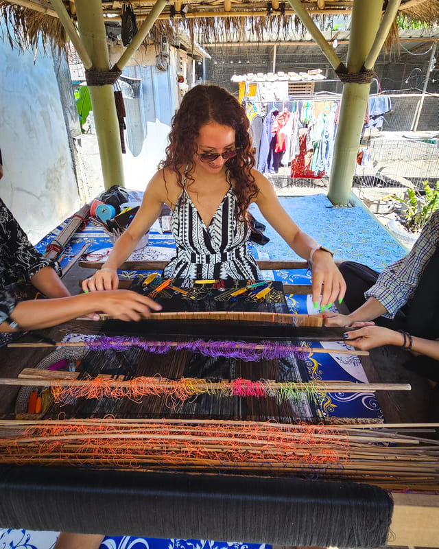 - Sukarara Village: Sukarara è un villaggio tradizionale, famoso per la sua produzione artigianale di tessuti tradizionali, noti come “ikat”. Qui puoi osservare le abili donne locali al lavoro mentre creano bellissime stoffe colorate e apprendere le tecniche tradizionali di tessitura. È un’esperienza culturale affascinante e un luogo ideale per acquistare souvenir unici. Io ho provato l’esperienza di tessitura, molto divertente!